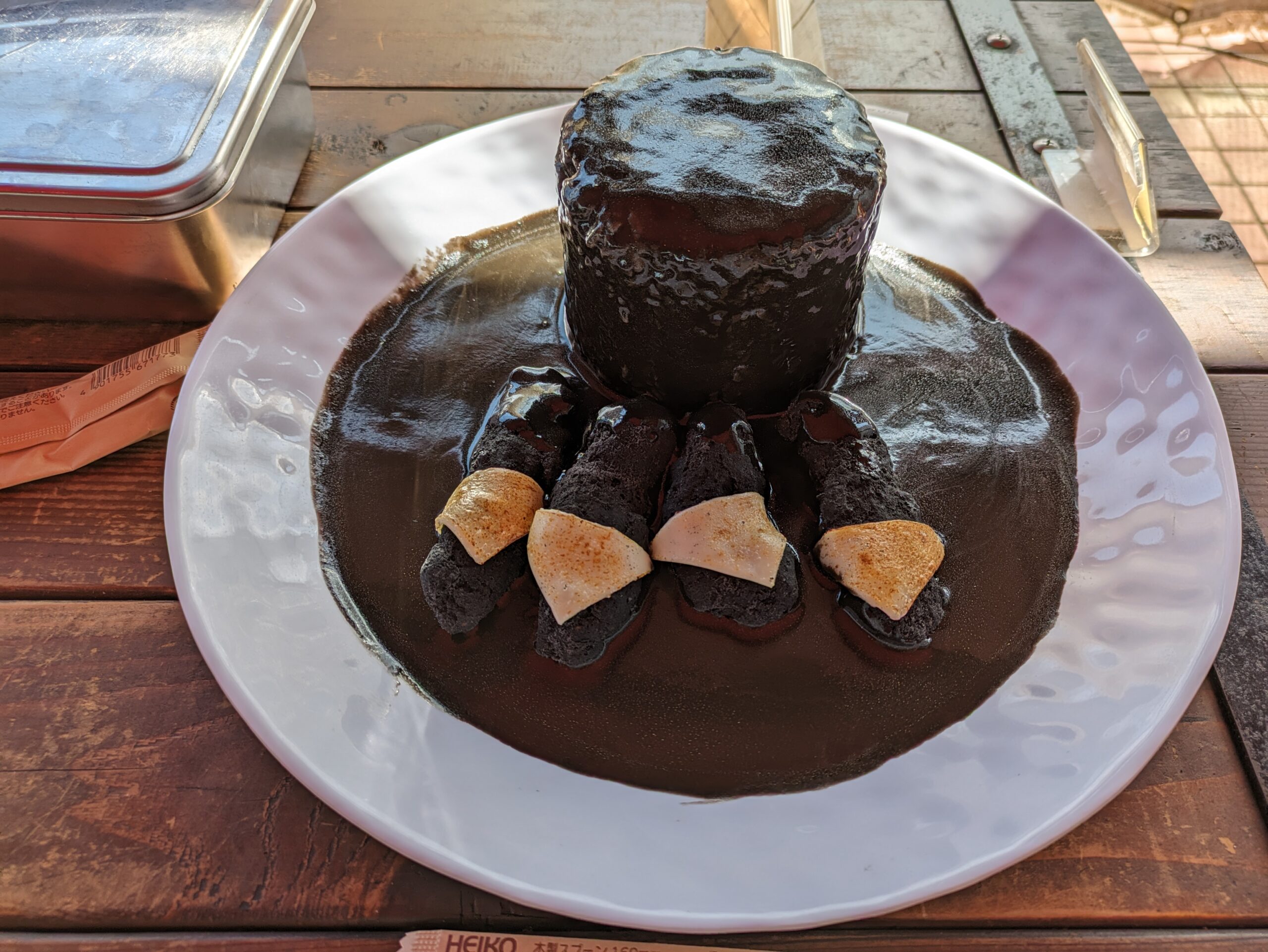 ルーもゴジラをイメージしてか真っ黒、因みに唐揚げも真っ黒、ライスは真っ白